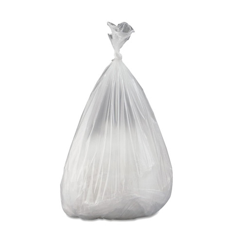 Remove office trash quickly and efficiently with these Brighton Professional high-density clear trash bags. Dispose of office trash with these clear trash bags. The natural color makes it easy to see what's inside of the bags, preventing theft and loss, while the star-sealed bottoms help prevent leaks, tears and rips. With a 45-gallon capacity that makes them perfect for getting rid of large amounts of trash, these Brighton Professional trash bags are ideal for busy offices. Ideal for all trash applications, including heavy industrial trash.