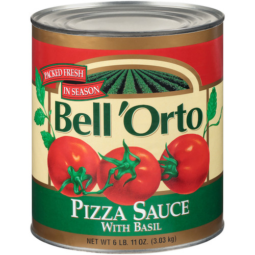 The Bell Orto Pizza Sauce with Basil is made from fresh, vine-ripened California tomatoes, a touch of salt, and a hint of basil. Ideal for pasta, pizza, sandwiches, and more, it is kosher certified making it suitable for those with special dietary needs. The bulk case with 6 cans of Bell Orto Pizza Sauce with Basil is a good buy for restaurants, diners, and cafes.
