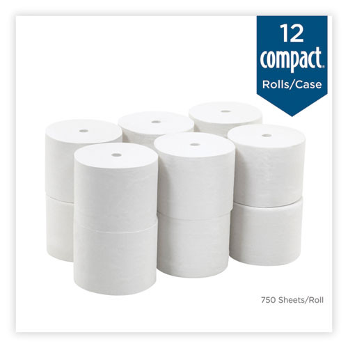 Compact Coreless Bath Tissue, Septic Safe, 2-ply, White, 750 Sheets/roll, 36/carton