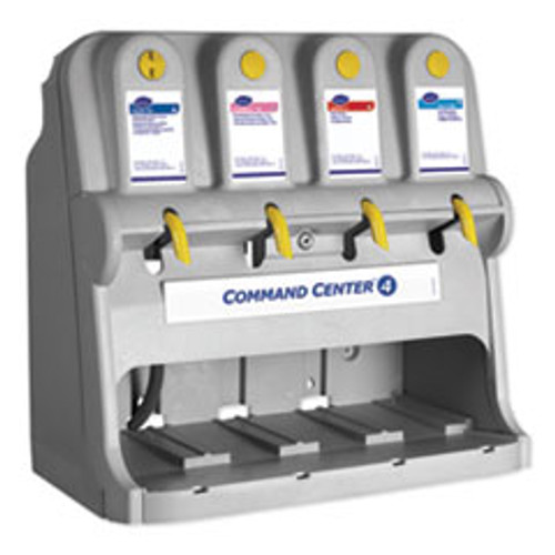 - With a push of a button, the dispenser mixes concentrated chemical with water on-site to provide a ready-to-use cleaning solution.