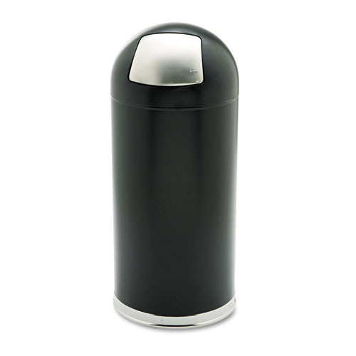Spring-loaded, self-closing stainless steel, push door traps odors and hides contents. Wide stainless steel bottom edge is rolled under to protect floors. Galvanized steel liner. Powder coat finish for durability.