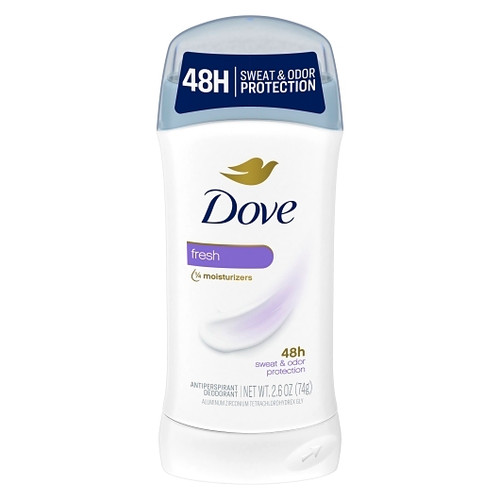 Keep underarms soft, smooth, and protected all day with Dove Invisible Solid Fresh Antiperspirant Deodorant Stick. Formulated with ¼ moisturizers, this antiperspirant helps soothe skin and reduce irritation caused by shaving while providing 48-hour sweat and odor protection. Its invisible solid formula glides on easily, leaves no white marks, and keeps you confident from morning to night.