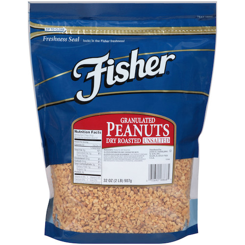 The Fisher Unsalted Dry Roasted Granulated Peanuts are a nutritious on-the-go snack suitable for all age groups. Enriched with protein, fiber, vitamin E, antioxidants, and potassium, these crunchy peanuts are a healthy option. The granulated peanuts are packaged in convenient, resealable bags to preserve freshness. This bulk pack of Fisher granulated peanuts will be ideal for school cafeterias, office pantries, and retail stores.