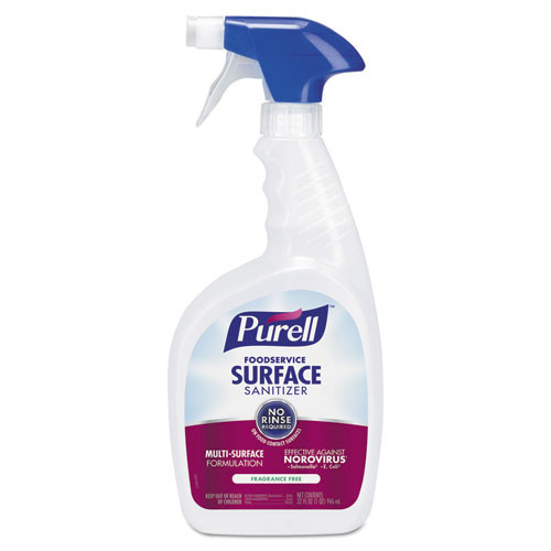 Formulated for convenience and ease-of-use, Foodservice Surface Sanitizer Spray provides powerful germ-kill on the surfaces people touch most – yet is gentle enough to use on a child’s highchair with no rinse required. Patented fragrance-free formulation sanitizes without any harsh chemicals. It eliminates 99.9 percent of viruses and bacteria on surfaces – including norovirus, E. coli, Salmonella, and human coronavirus in 30 seconds.