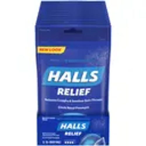 Halls Menthol Lyptus Cough Drops offer a cooling, refreshing flavor while providing soothing relief for coughs and sore throats. They also help cool nasal passages for added comfort. The bulk case with 48 packs is perfect for candy stores, cafeterias, and retail outlets.