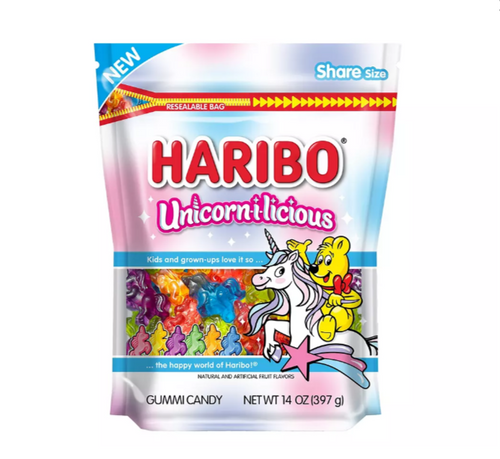 Introducing Haribo s latest enchanting creation: Unicorn-i-licious! Immerse yourself in a world of whimsy and flavor with our delightful unicorn-shaped gummies, in a kaleidoscope of colors and six spellbindingly delicious flavors: apple, blue raspberry, berry punch, banana, and for the first time, cotton Candy and tangerine. Crafted with care and a sprinkle of magic, Unicorn-i-licious is the perfect treat for unicorn enthusiasts, dreamers, and anyone seeking a taste of pure enchantment.