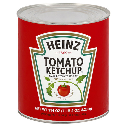 The ready-to-use HEINZ Tomato Ketchup is made with a blend of tomato concentrate, spices, and onion powder. This delicious condiment has a thick texture with a rich tomato flavor packed in number 10 cans. Great to add on sandwiches, pizzas, rolls, and burgers, this tomato ketchup is an ideal buy for cafes, bistros, diners, and breakfast inns. This bulk case contains 6 cans of HEINZ tomato ketchup.