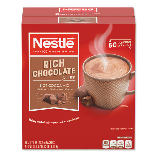 Rich hot chocolate mix to stay warm on those cold days. Contains 35% less sugar than other major brands. Enjoy the sweet flavor of Nestle Hot Cocoa. Each packet makes one perfect cup of cocoa.Note: This is a non-returnable item.