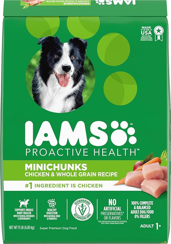 Iams Proactive Health MiniChunks Chicken Adult Dog Food, 15 Pound.
