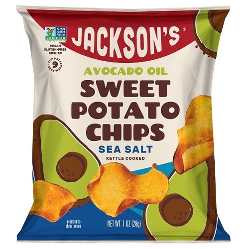 Enjoy the simplicity of natural flavors with Jackson s Sea Salt Sweet Potato Chips cooked in avocado oil. These chips highlight the rich, natural sweetness of premium sweet potatoes, perfectly balanced with a light sprinkling of sea salt. Cooked in avocado oil, they offer a satisfying crunch and a subtle richness, creating a wholesome snack that’s both delicious and nourishing. Their clean and straightforward ingredients make them a versatile option for any snacking occasion.