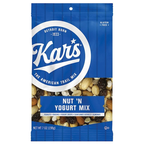 Features: Dont Think You Have The Energy To Keep Putting One Foot In Front Of The Other. Kars Nut N Yogurt Trail Mix Is Made With Greek Style Yogurt Drops, Raisins, Nuts And Sunflower Seeds - The Kind Of Foods To Keep You Going; Whether Your Idea Of A Trail Is A Roots And Rocks Expedition Or Pounding The Pavement With Your Pekingese.