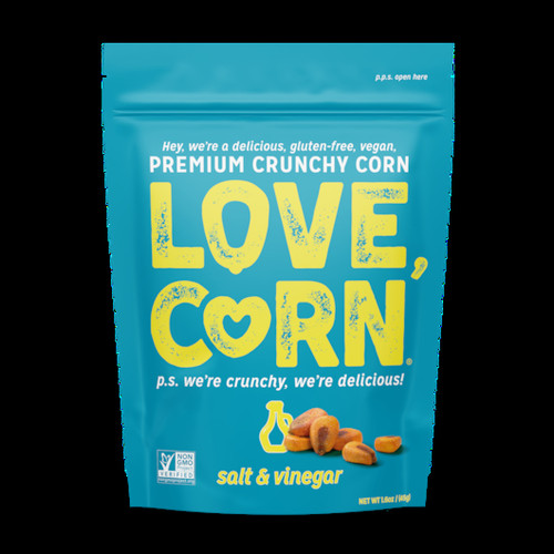 The Love Corn Salt and Vinegar Corn is a savory and flavorful snack option. Gluten free, vegan, and kosher certified, it is suitable for various dietary needs. The bulk case with 10 packs of Love Corn Salt and Vinegar Corn is ideal for cafeterias, pantries, and retail stores.Love Corn Is The First Premium Crunchy Corn Snack Made With Simple Ingredients And Bold Flavors For A Delicious Alternative To Chips! These Crunchy & Delicious Snacks Are As Simple As They Get And Perfect For On-The-Go, Packed In A Lunchbox, Sprinkled On A Salad, Or Paired With A Refreshing Beverage. We Tick All The Boxes¦ Plant-Based, Vegan, Non-Gmo, Gluten-Free & Sugar-Free!
