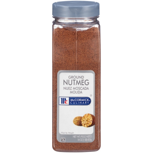 The McCormick Culinary Ground Nutmeg has a sweet, warm, and spicy flavor. Ideal for sweet as well as savory dishes, it goes well in cookies, cakes, sauces, stews, and more. The bulk case with 6 bottles of McCormick Culinary Ground Nutmeg is a good buy for supermarkets, hypermarkets, and retail stores. -