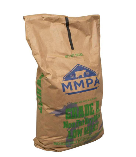 The Michigan Milk MMPA Grade A Low Heat Nonfat Dry Milk is milk powder made from skim milk. This low-heat, dry milk can be used as an ingredient in frozen desserts, infant formula, dressings, yogurt, cheese fortification, and prepared mixes. Ideal for restaurants, cafes, diners, bakeries, and confectioneries, this bulk case comes with a 50 pound of Michigan Milk MMPA dry milk.