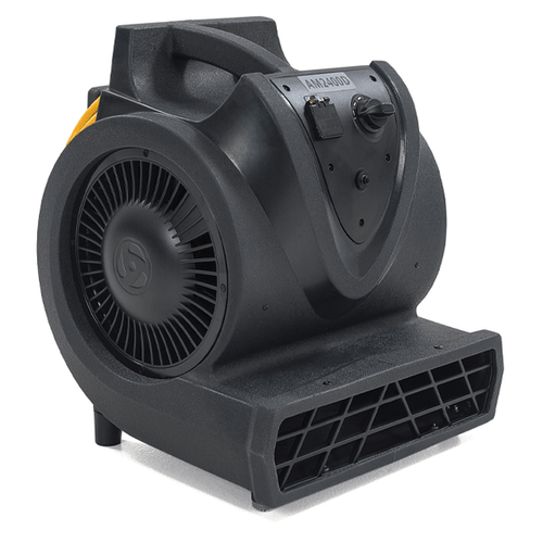 A 3-speed induction motor with thermal protection delivers up to 2,400 CFM air flow while minimizing energy usage. Four position settings provide flexibility for directing air movement while the built-in power outlet allows for daisy-chaining up to three units for maximum efficiency. The AM2400D, with an optional trolley kit with transport wheels and retractable handle, is lightweight and stackable, making it easy to carry, store and transport. Protected by a strong roto-molded housing, the AM2400D is robust and ready to work.