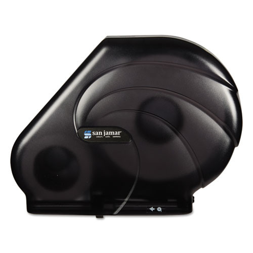 Toilet tissue dispenser eliminates stub roll waste and ensures the continual availability of paper through the Infinity® System, which protects the primary roll until the stub roll is used up. Conveniently universal, dispensing any quality or brand of toilet tissue. Attractive, flowing wave design built into the plastic makes it aesthetically pleasing. Dispenser is tough, with break-resistant plastic construction. A replaceable finger lock helps keep it secure.