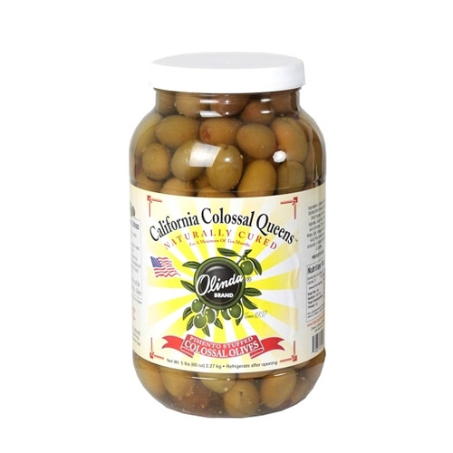 The Olinda Colossal Queen Olives are stuffed with sweet and spicy pimento. These olives are excellent for snacking, adding to pizza, pasta, salads, cocktails, and more. The bulk case with 4 packs of Olinda Colossal Stuffed Queen Olives is ideal for restaurants, diners, and cafes. -