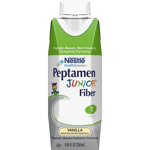 Specifically designed for children ages 1-13 with impaired GI function, Peptamen Junior® Fiber is a peptide-based pediatric formula that is well-tolerated and easy-to-digest. This nutritionally complete formula contains a blend of soluble and insoluble fiber to help support digestive health and bowel function.