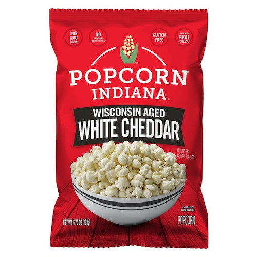 The Popcorn Indiana White Cheddar Popcorn is made from the goodness of non-GMO corn and real cheese. It makes a good snack option. Available in a bulk case of 12 packs, the Popcorn Indiana cheddar popcorn would be a great buy for supermarkets, cafeterias, and pantries.Theres nothing quite like the rich, full flavor of authentic aged Wisconsin cheddar cheese; its smooth and creamy texture belies its sharp and tangy taste. When we added it to our light and fluffy popcorn, we nearly cried. Tears of joy, of course. Seriously, its that good. One bite of our Aged White Cheddar popcorn and youll be hooked. Theres no other gluten free, cheddar cheese popcorn like it. Munch Better.