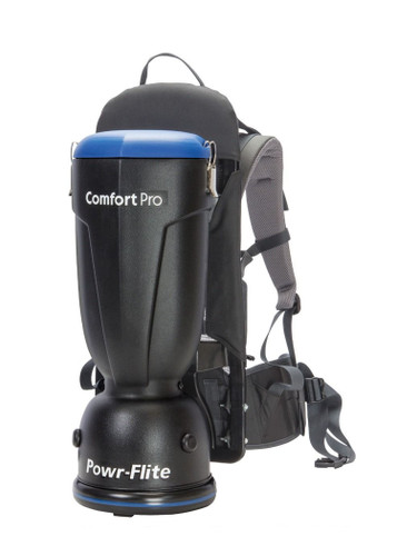 A professional cleaning powerhouse! The Powr-flite 6 Quart Standard Comfort Pro Backpack Vacuum is a 4 stage HEPA filtered backpack vacuum, but only when used with the HEPA filtered vac bags. Efficiently move through an office environment with the ability to move from the carpet or hard floor to above the floor cleaning in seconds. The premium model features storage for tools right on the belt - so you can clean any surface without having to go back and change equipment. Comfort Pro backpacks deliver superior comfort, plus improved cleaning performance and productivity. Independent studies show backpacks clean over 2 1/2 times faster than traditional uprights, and Comfort Pro is engineered to ensure an unparalleled level of operator comfort and efficiency.