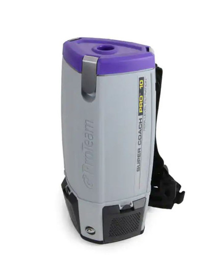 Proteam Super Coach Pro 10 Backpack Vacuum with Xover Fixed-Length Two-Piece Wand, 10 Quart Tank Capacity, Gray/Purple