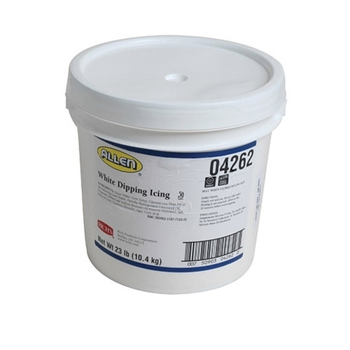 The Rich JW Allen White Dipping Icing can be used with donuts that do not need heating. With no trans fat or cholesterol, this icing adheres to kosher diet plans. Available in a 23-pound pail, the Rich JW Allen icing bulk case is a great buy for bakeries, cake shops, and cafes.