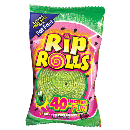 Evoke unforgettable summer memories with these watermelon Rip Rolls® that offer your customers 40 inches of fun licorice candy. With natural fruit juice flavor, these fat-free candy rolls stand out next to other candy creations from Rips®.