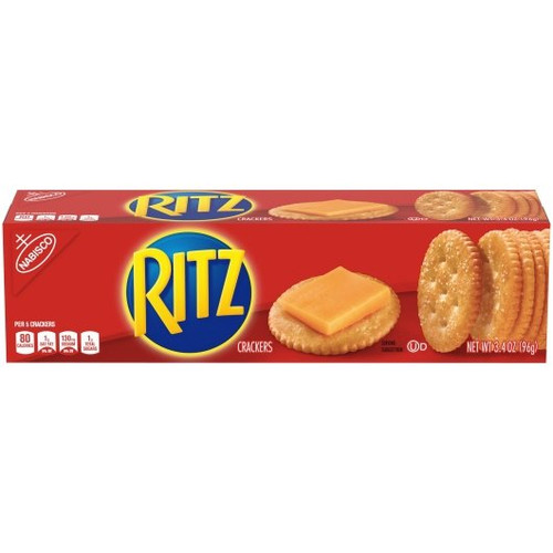The Nabisco Ritz Crackers make for a tasty on-the-go snack that is sure to be enjoyed by kids and adults alike. These classic crackers pair well with cheese or any topping. Available in a bulk case of 12 packs, the Nabisco Ritz Crackers are ideal for cafeterias, retail outlets, and convenience stores. - Classic crackers