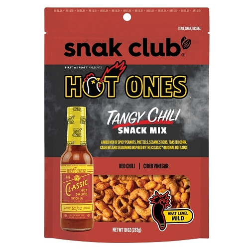 Mild Heat Spicy Snacks: Enjoy the flavorful union of Snak Club x Hot Ones Tangy Chili Snack Mix, the blend that features a mouth-puckering kick of Fresno chilies & savory vinegar. A flavor profile that is simply irresistible to your taste buds. Tangy Taste Fusion: Our vegan-friendly snack mix is inspired by the Classic Original Hot Sauce to spice things up, blending mild-heat peanuts, pretzels, sesame sticks, toasted corn, cashews and seasoning. Contains no artificial colors or flavors.