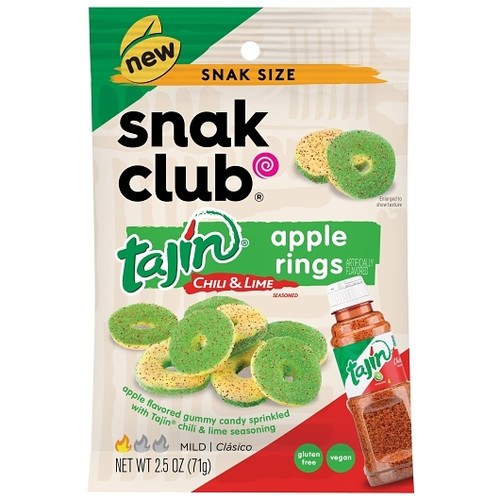 The Snak Club Tajin Apple Rings Gummy Candy is sweet and spicy, making for a delicious snack option for kids. Gluten free and vegan, it is suitable for various dietary needs. The bulk case with 6 packs of Snak Club Gummy Candy is ideal for candy stores, canteens, and convenience stores.