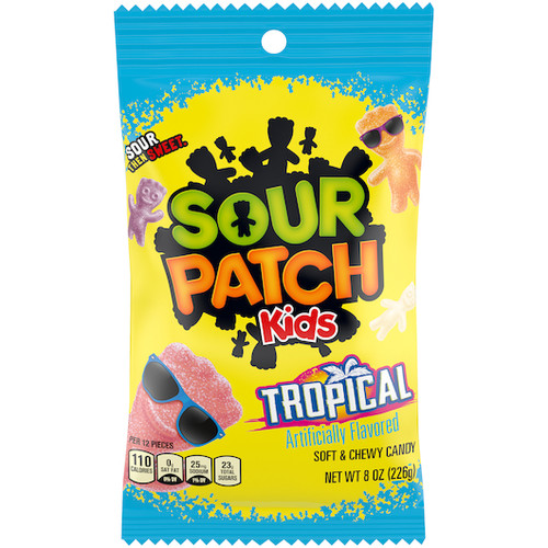 Sour Patch Kids Fat Free Tropical Soft Candy Peg Bag, 8 Ounce, 12 Per Case