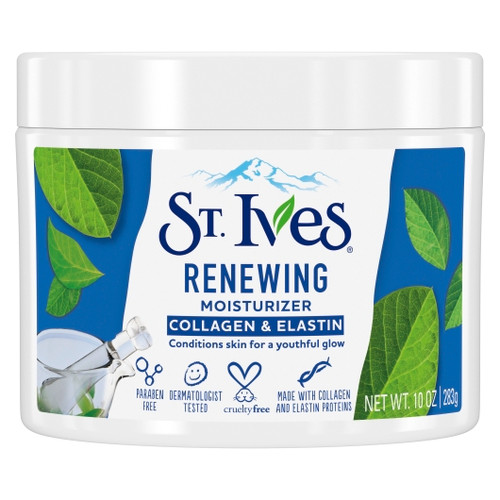 St. Ives Renewing Collagen & Elastin Moisturizer is infused with hardworking collagen and elastin, for a hydrating formula that promotes a youthful glow. Give your skin a daily moisture boost with this facial moisturizer. Made with collagen, elastin and safflower oil, it s safe to use morning and night for smooth, hydrated skin. Now it s easier than ever to nourish your skin with the goodness of 100% natural moisturizers. A lesser known relative of the sunflower, the safflower is a plant with red, yellow and orange flowers. But you shouldn t be deceived by its prickly looking exterior; the plant s oil is known to help to smooth and moisturize skin. Our safflowers come from all over the world, including such countries as Australia and Argentina. The flowers we use are carefully picked and then put through a process which consists of soaking and refining to extract the oil, which is a 100% pure and natural moisturizer too. Youthful skin is always in! This face moisturizer helps renew skin for a beautiful, healthy glow. Collagen and elastin proteins are naturally present in healthy skin. Our nourishing face moisturizer helps you support your body s natural production of these building blocks. To use, apply paraben free face lotion to face and neck, morning and evening — and give your skin the TLC it deserves.