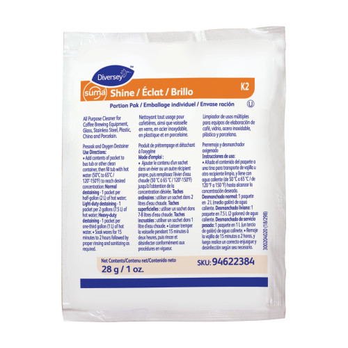 Diversey™ Suma Shine Portion Pak, Powder, 100 Per Carton