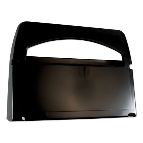Made from plastic for durability while remaining lightweight. May be mounted by two-way tape or screws to fit most washroom needs. Capable of holding up to two packs of 250 half-fold toilet seat covers.