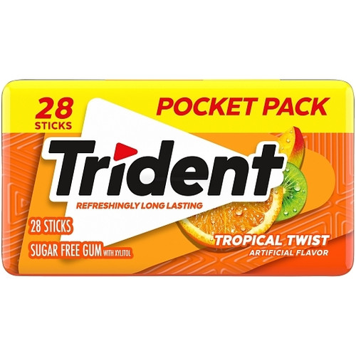 The Trident Tropical Twist Sugar Free Gum helps clean and protect teeth. It also freshens the breath, making it an excellent mouth freshener. The bulk case with 48 packs of Trident Gum is ideal for cafeterias, pantries, and retail stores.