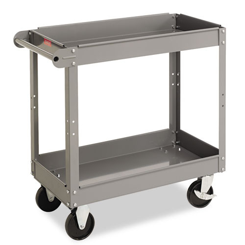 The Rubbermaid Commercial Heavy-Duty Utility Cart, 2 Shelf, Medium, is constructed of sturdy structural foam that will not dent, chip, or peel. 2 shelves support up to 500 lbs. of materials...