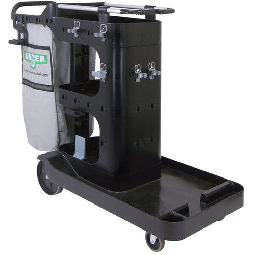 This Unger RRCRT RestroomRx janitor / housekeeping cart with bag is the perfect way to clean and restock the restrooms in your hotel, office, store, or restaurant! This cart is designed to be the most efficient, ergonomic way to clean. It includes a vinyl trash bag to minimize the number of plastic bags used, and the cart's multiple storage compartments reduce the number of trips to the supply room. Keep every tool secure on this cart with the included tool clips and holders, which securely keep tools within reach so that nothing will fall off or stick out beyond the base of the cart.